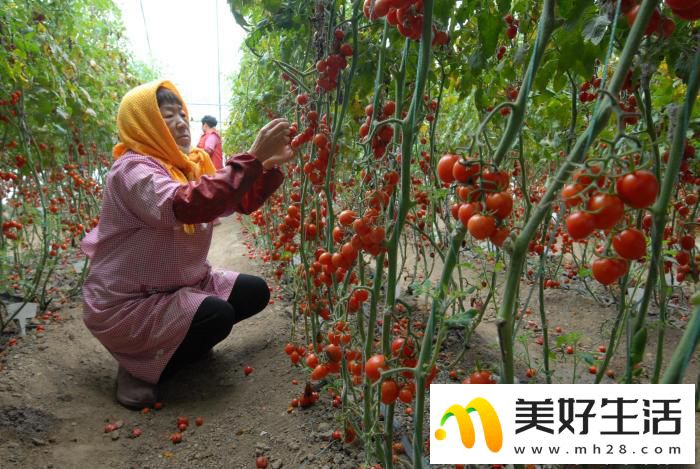 村民在大棚里采摘“圣女果”西红柿。张涛 摄
