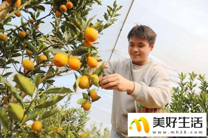 图为一名游客在采摘砂糖橘。龚普康 摄