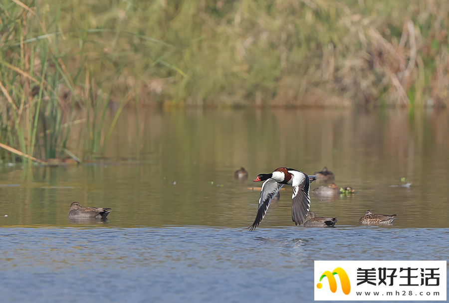 翘鼻麻鸭低空飞行(1月6日摄)。新华网发(杨学飞 摄)